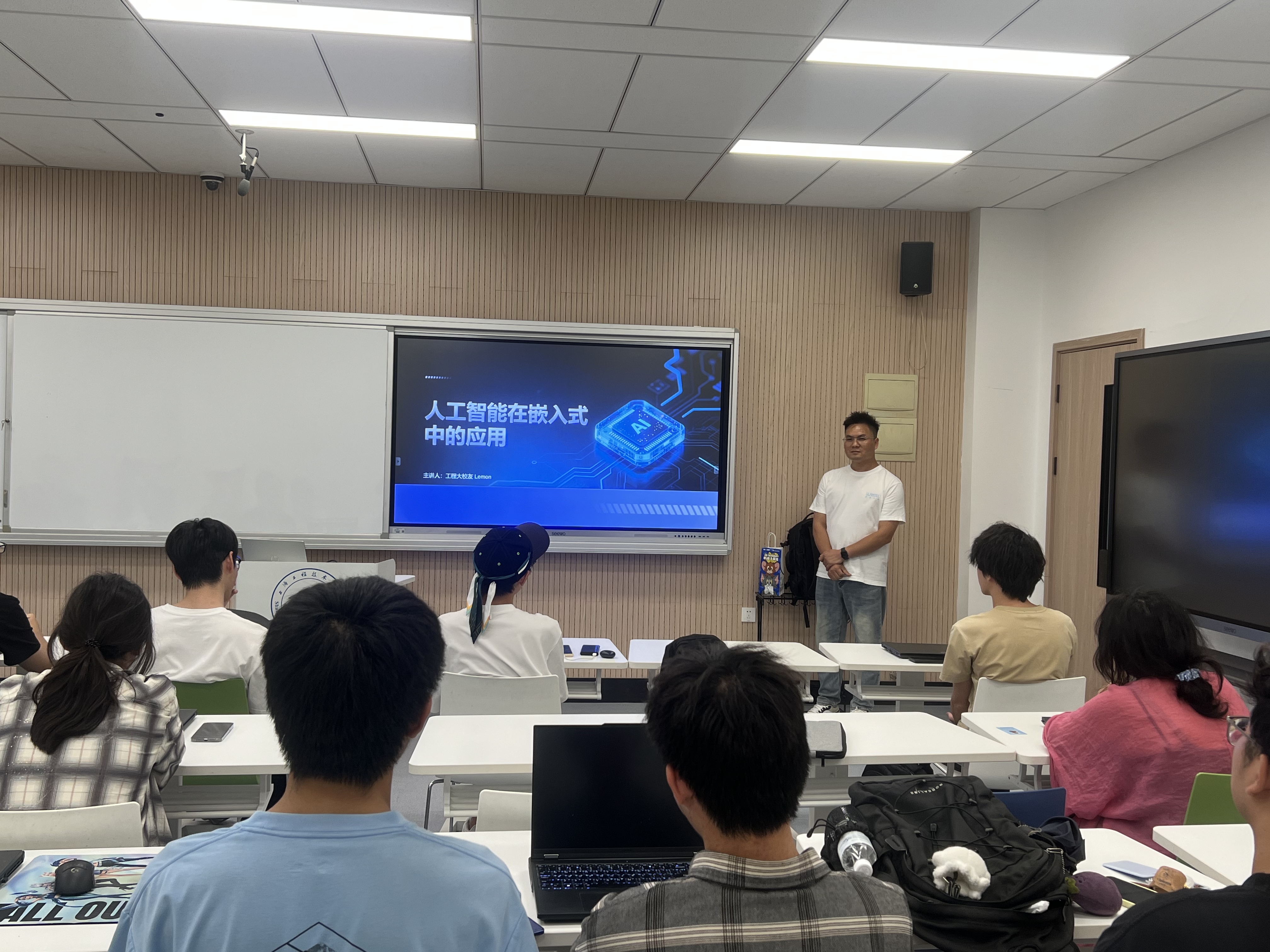 本次讲座的主题是“探讨人工智能在嵌入式领域的应用,涵盖技术原理与实践案例,解析发展趋势。”李萌从服务机器人、智能汽车和智能家居等应用实例引入,展示了AI与嵌入式系统结合的实现路径与创新模式;进而深入讲解了嵌入式硬件资源优化、轻量化算法部署、实时操作系统适配和构建高效AIoT解决方案(人工智能AI技术与物联网IoT技术相结合,以实现更高效的自动化和基于数据的决策的方案);最后引导同学们一起展望了边缘计算与AI芯片协同发展,推动嵌入式系统向自主决策和自适应学习方向突破。