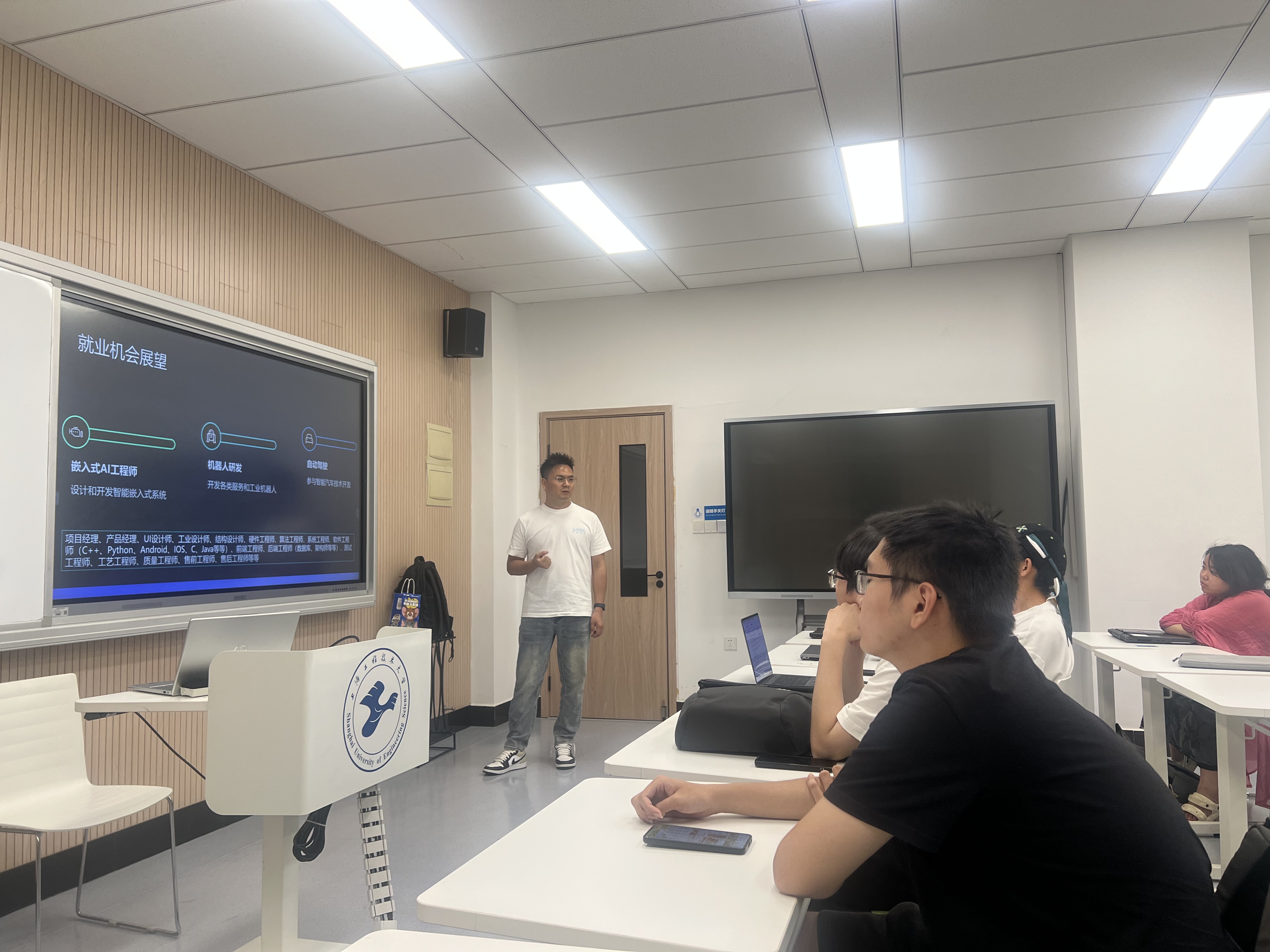 讲座中,李萌还以自身成长经历对学生进行了就业指导,针对嵌入式AI开发、机器人系统设计及自动驾驶技术等岗位需求现状,展示了嵌入式方向的优秀毕业生简历,为学生提供多元化发展路径规划。