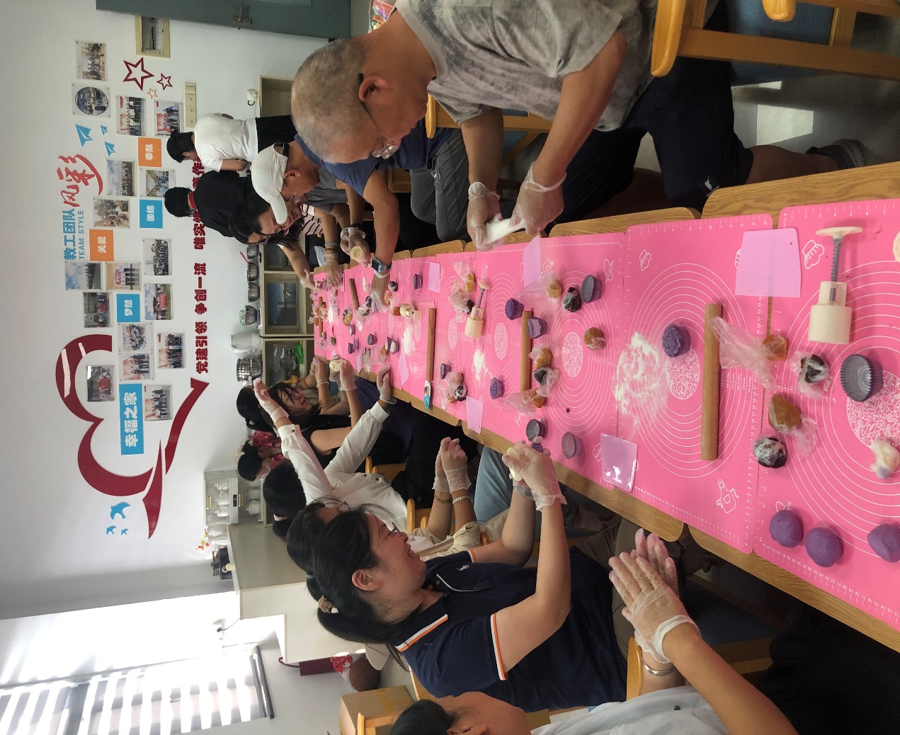 活动现场在专业烘焙导师的指导下,从饼皮揉制的细腻手法,到馅料包裹的精准技巧,再到“月满中秋、幸福团圆” 等吉祥纹样的压模诀窍,耐心细致地为教职工拆解每一个步骤,让传统美食制作的匠心与智慧在互动中传递。欢声笑语间,一个个印着精致花纹的冰皮月饼就跃然桌上,食物的香气与节日的喜悦交织,勾勒出中心 “大家庭” 的温馨图景。