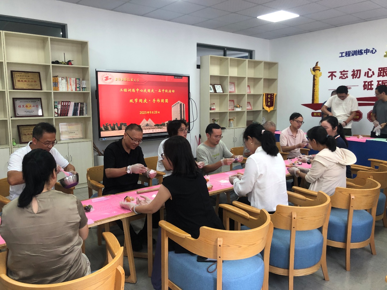 金秋送爽,丹桂溢香,在国庆与中秋佳节双至之际,工程训练中心于9 月28日举办 “庆国庆・品中秋” 手作团圆主题DIY活动,近30名教职工欢聚一堂,以指尖匠心镌刻节日温情,以家国同心共谱团圆乐章。