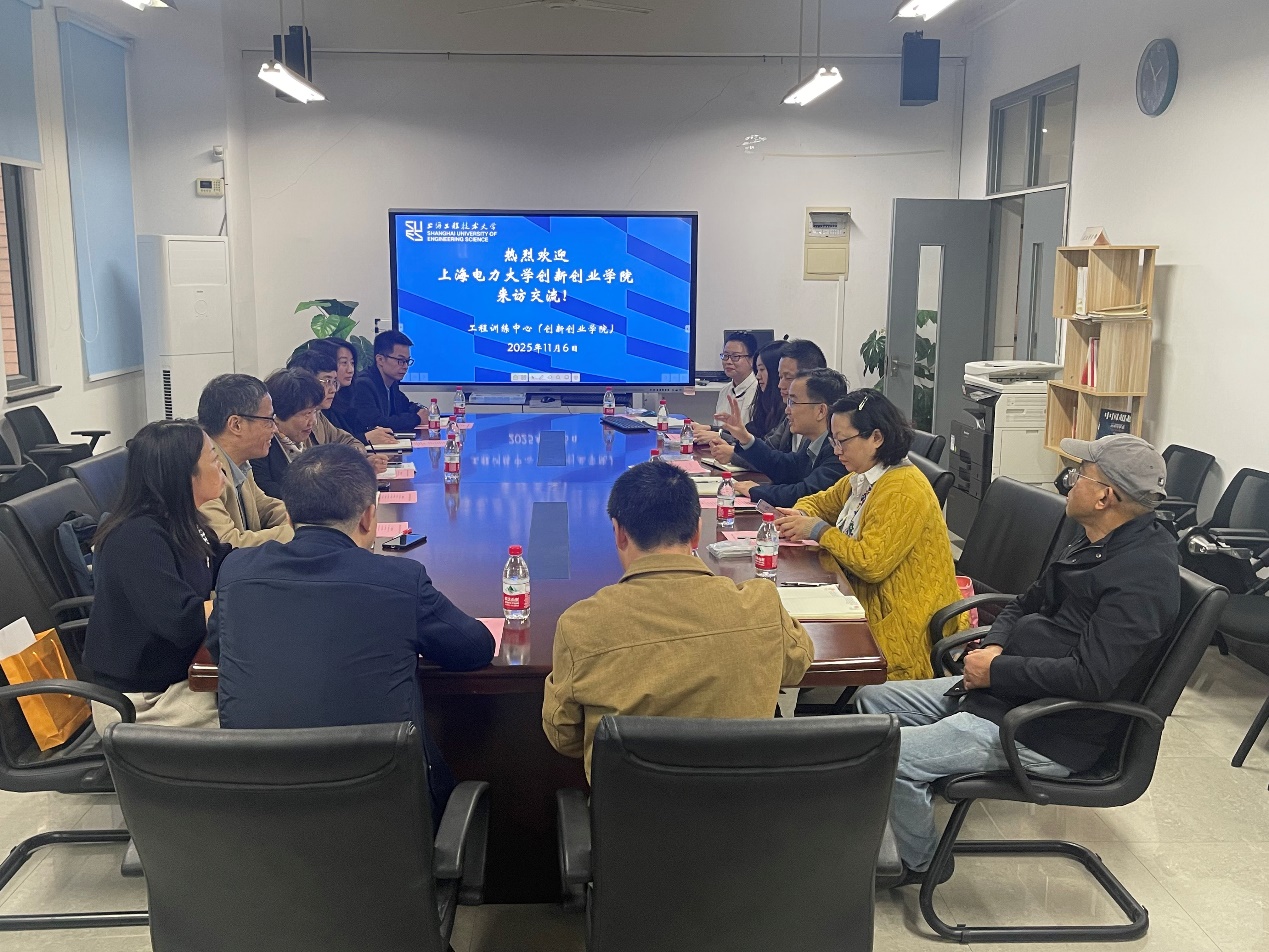 2025年11月6日下午,上海电力大学创新创业学院副院长孙玉芹、丁家峰、于会群等一行9人来访我校调研创新创业工作。我校工程训练中心主任(创新创业学院院长)陈浩、副主任钱宇彬、以及创新创业实践部等相关室部负责人出席接待。调研交流会由陈浩主持。