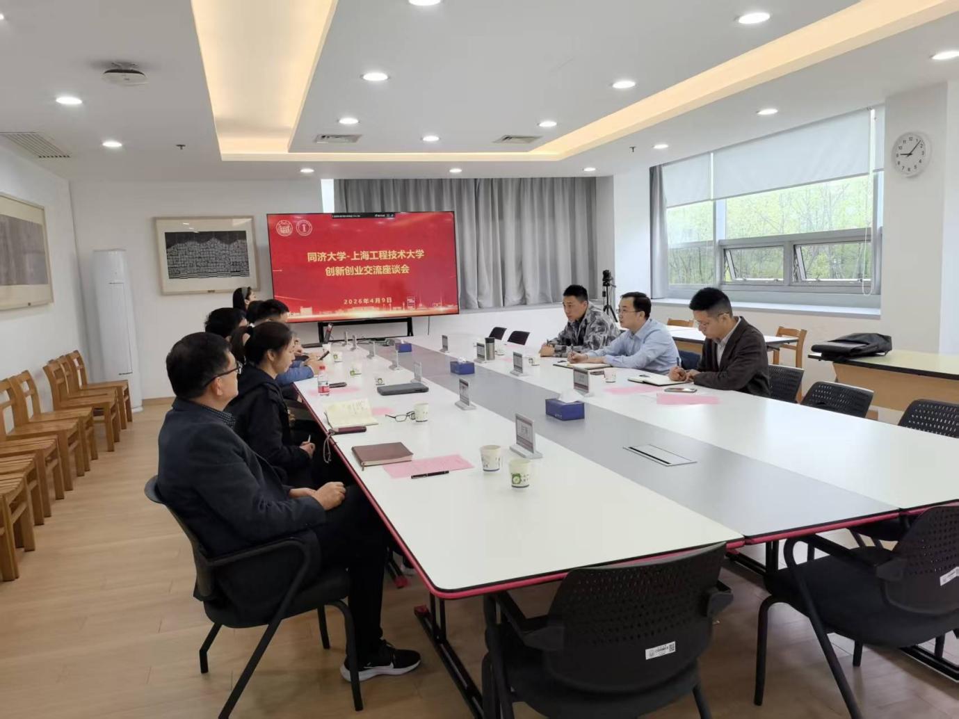 为深化校际合作,推动创新创业教育高质量发展,2026年4月9日上午,上海工程技术大学创新创业学院院长陈浩、副院长万军率队赴同济大学创新创业学院开展专题交流研讨。同济大学创新创业学院副院长陆志波、校团委副书记施卫国及相关部门负责人参加座谈。
